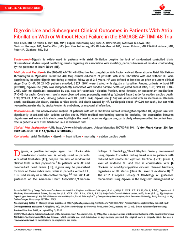 (PDF) Digoxin Use and Subsequent Clinical Outcomes in Patients With ...