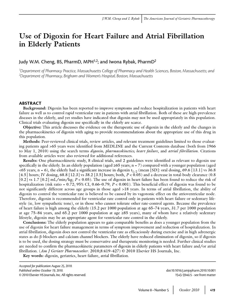 Use of Digoxin For Heart Failure and Atrial Fibrillation | PDF | Heart ...
