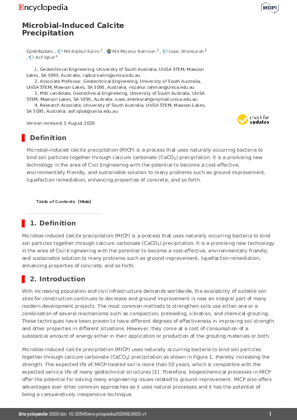Microbially Induced Calcite Precipitation (MICP): Review from an ...