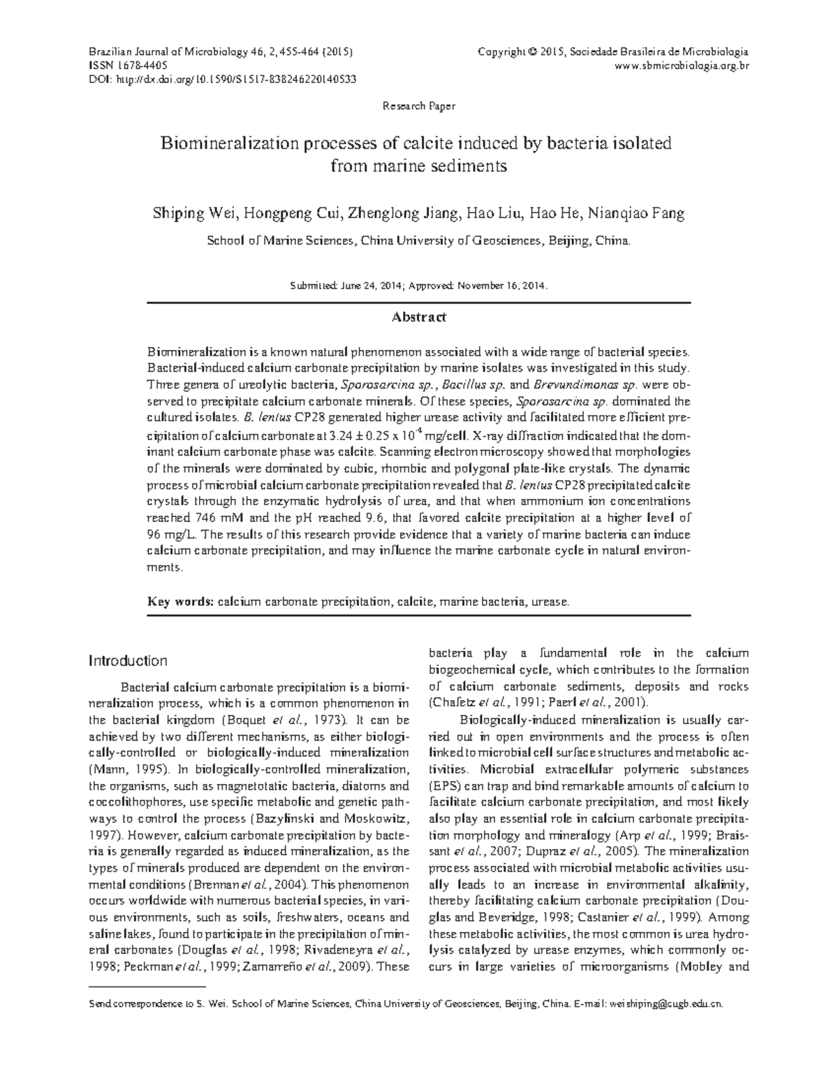 (PDF) Biomineralization processes of calcite induced by bacteria ...