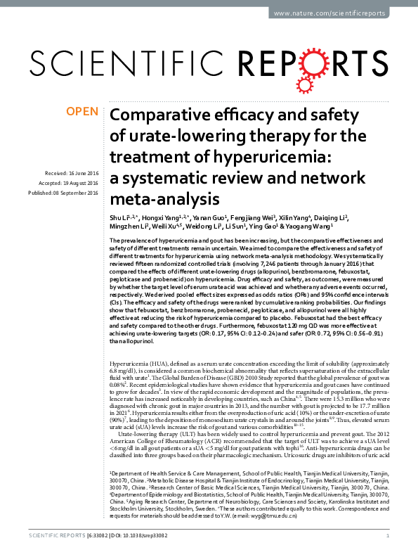 Physiology of Hyperuricemia and Urate-Lowering Treatments. - Abstract ...