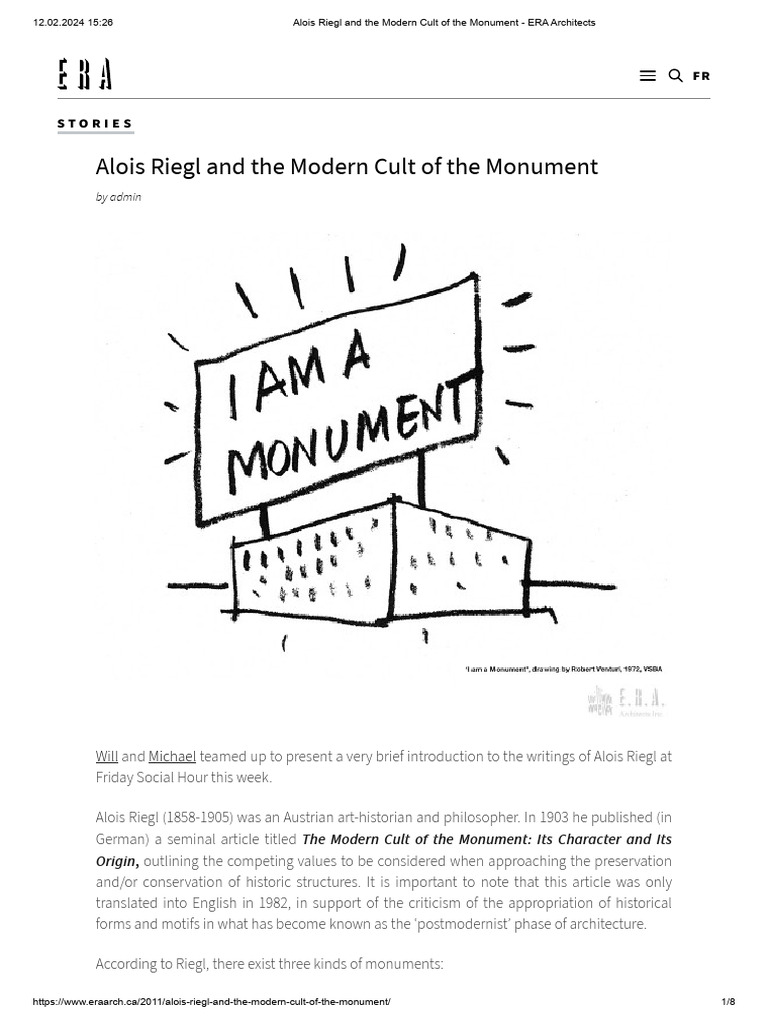 Alois Riegl and The Modern Cult of The Monument - ERA Architects | PDF ...