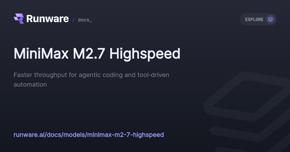 MiniMax M2.7 Highspeed | Runware Docs