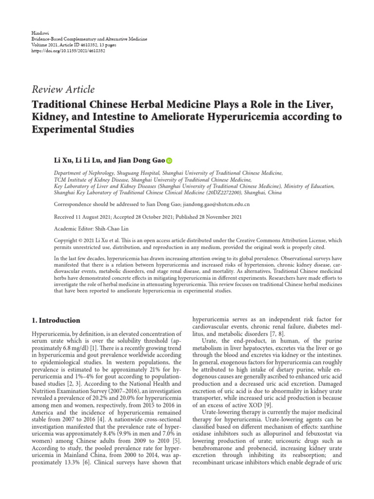 The potential of Chinese medicines in the treatment of hyperuricemia - PMC
