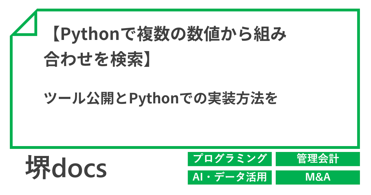 【Pythonで複数の数値から組み合わせを検索】ツール公開とPythonでの実装方法を | 堺総合研究所