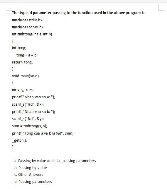Solved When performing parameter passing to the function, | Chegg.com