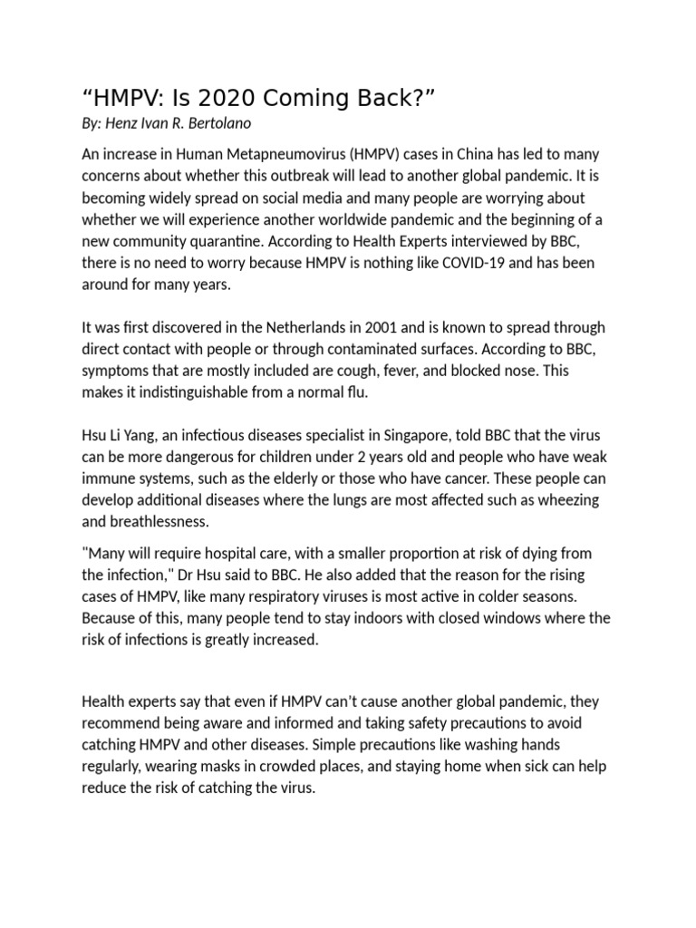 China HMPV Outbreak 2025- What's the reality? - SCIENCE HELIX