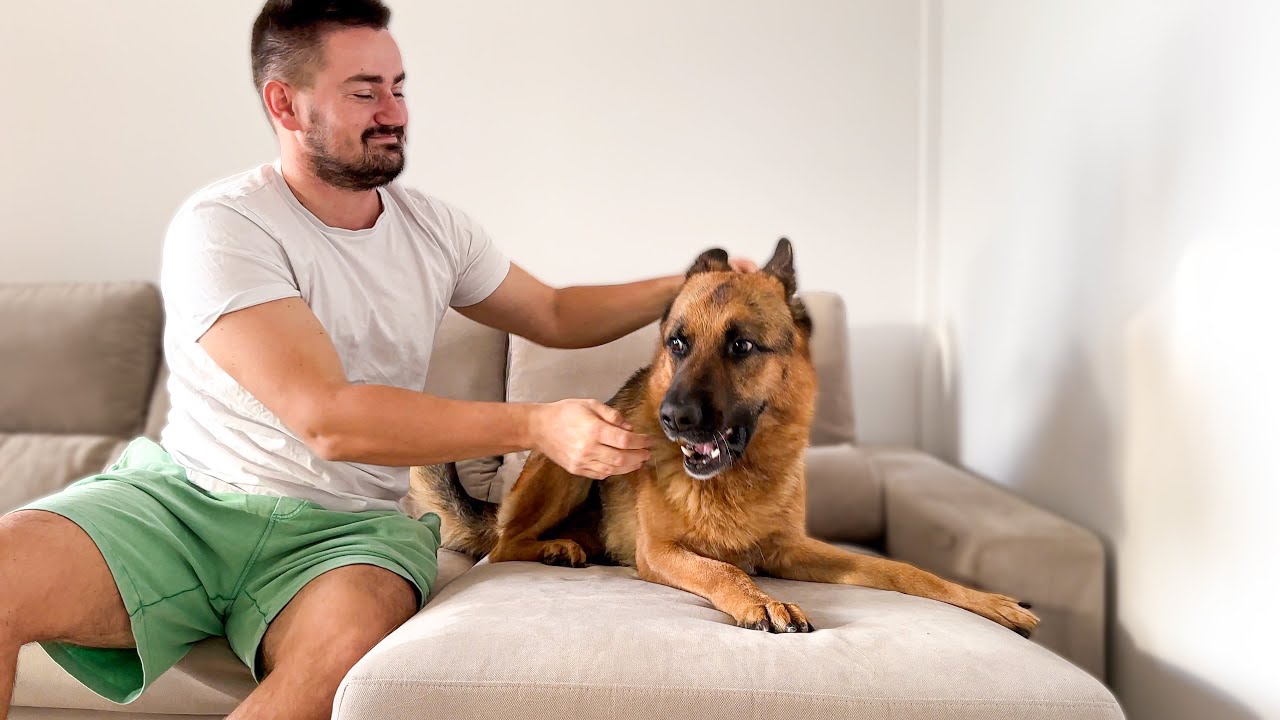 German shepherd reacts like this to dad’s love