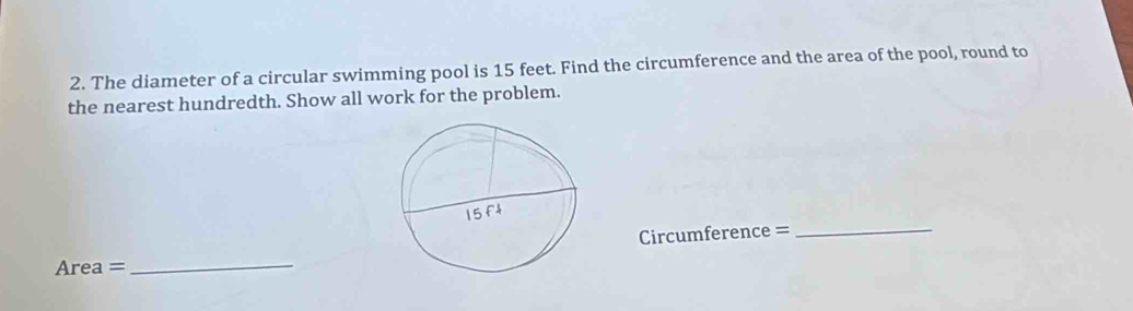 Solved: The diameter of a circular swimming pool is 15 feet. Find the ...
