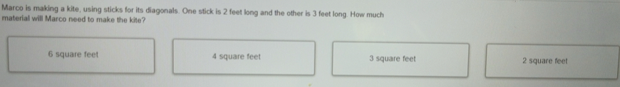 Solved: Marco is making a kite, using sticks for its diagonals. One ...