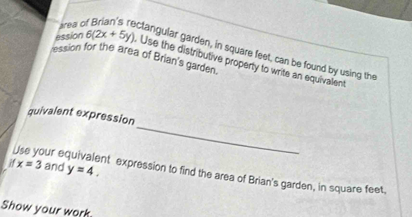 Solved: area of Brian's rectangular garden, in square feet, can be ...