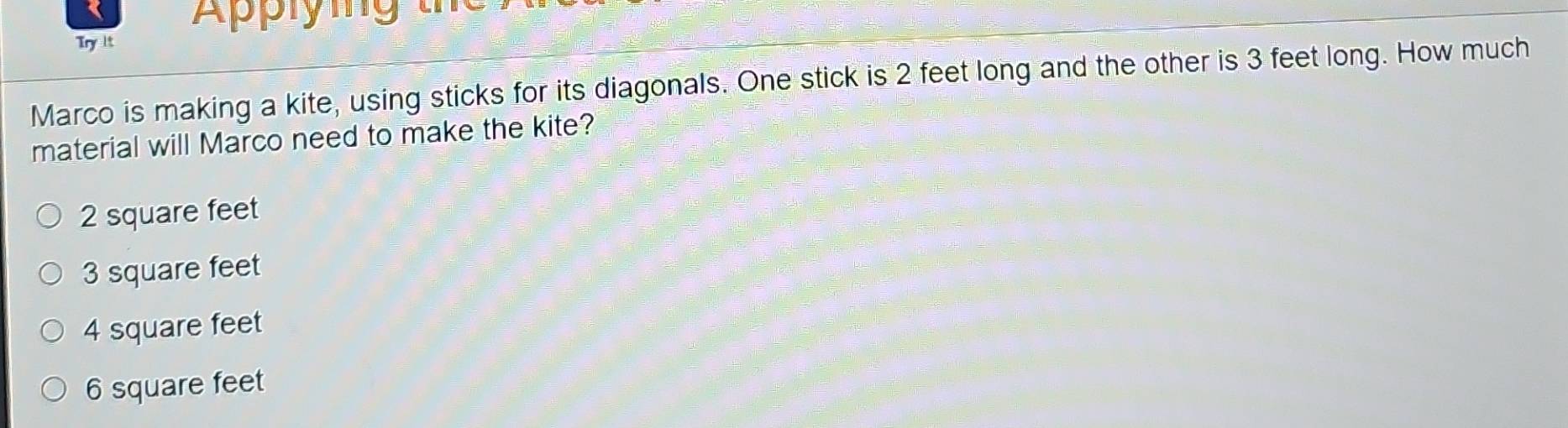 Solved: Aply n g t Try it Marco is making a kite, using sticks for its ...