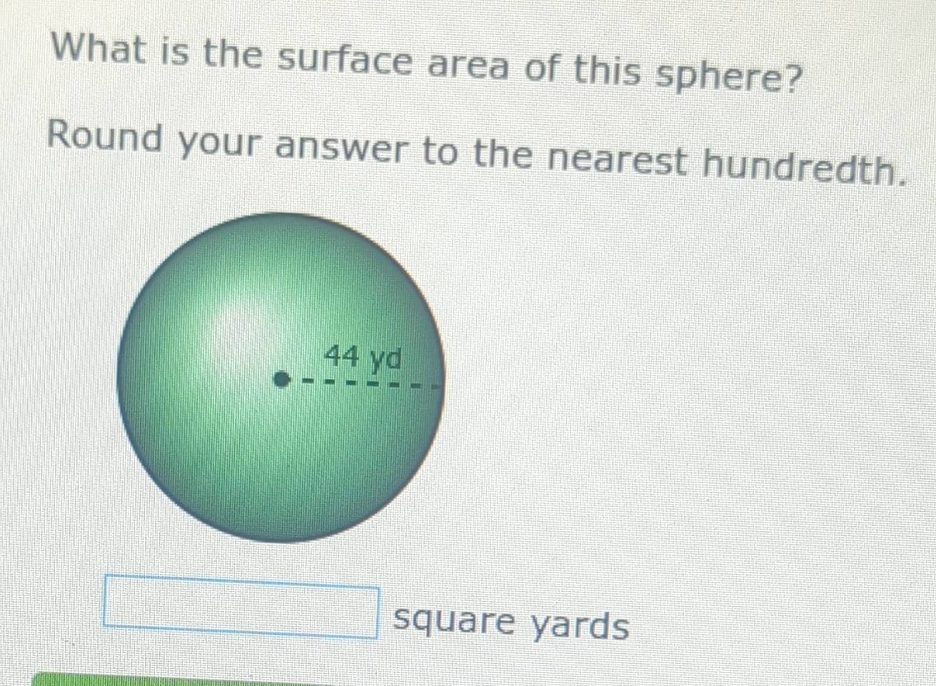 Solved: What is the surface area of this sphere? Round your answer to ...