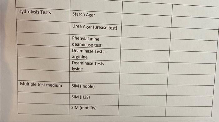 Solved Hydrolysis Tests Starch Agar Urea Agar (urease test) | Chegg.com