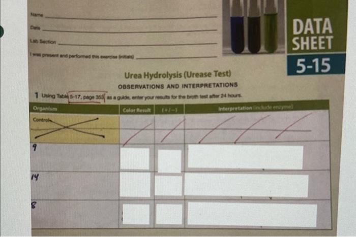 DATA SHEET 5-15 Urea Hydrolysis (Urease Test) | Chegg.com