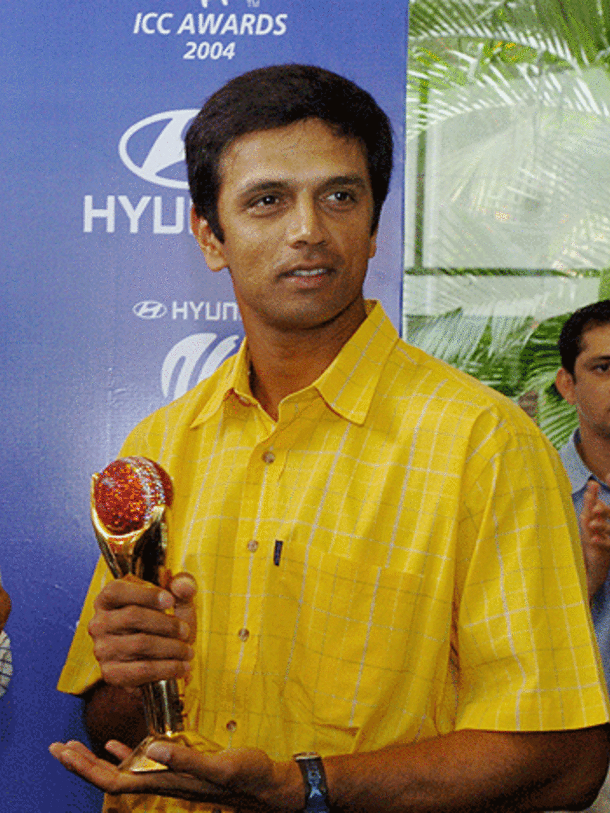 Rahul Dravid holds the trophy for winning the 2004 ICC Player of the ...