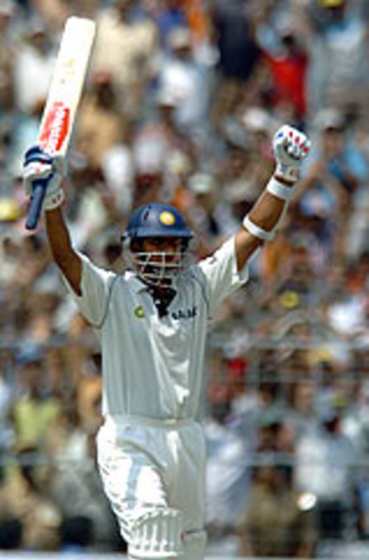 Rahul Dravid celebrates on reaching his century | ESPNcricinfo.com