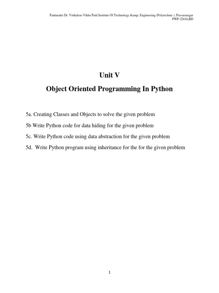 Unit-I: Classes and Objects in Python Programming (OOP) - Studocu