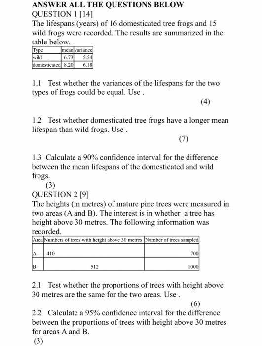 ANSWER ALL THE QUESTIONS BELOW QUESTION 1 [14] The | Chegg.com