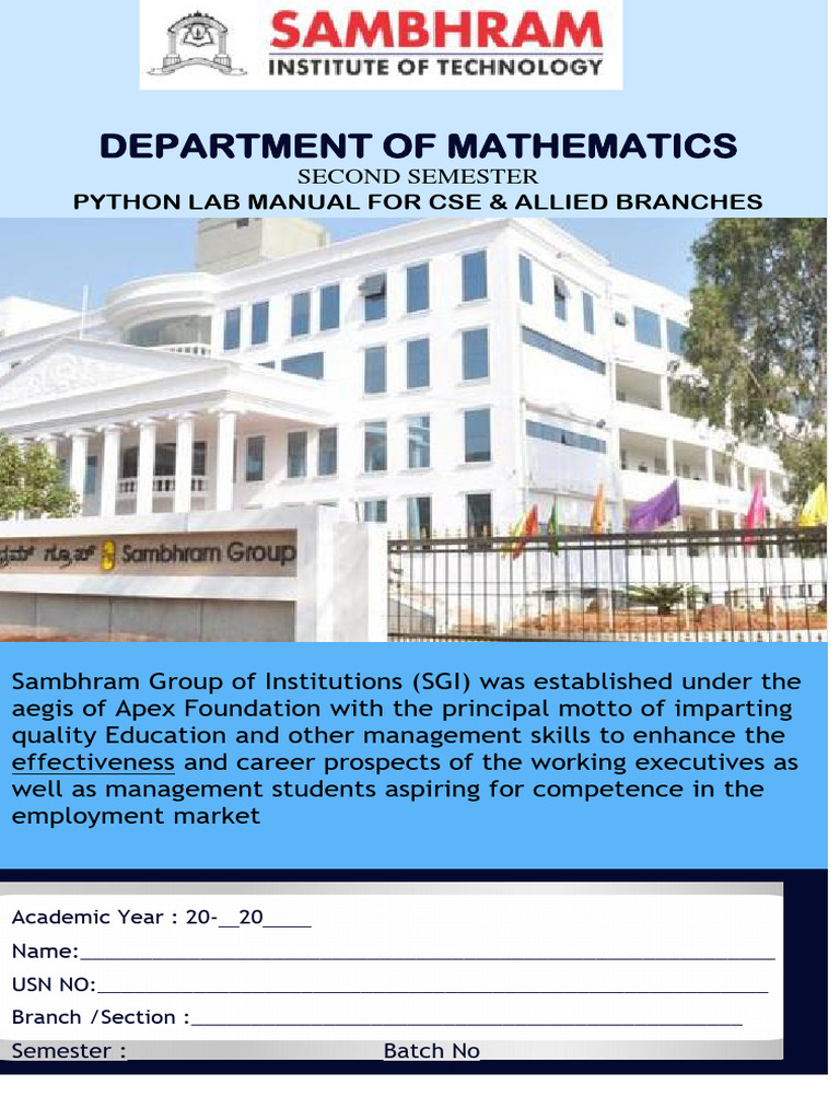 Python Programming Laboratory Manual (B.Tech I Year II Sem) - Studocu
