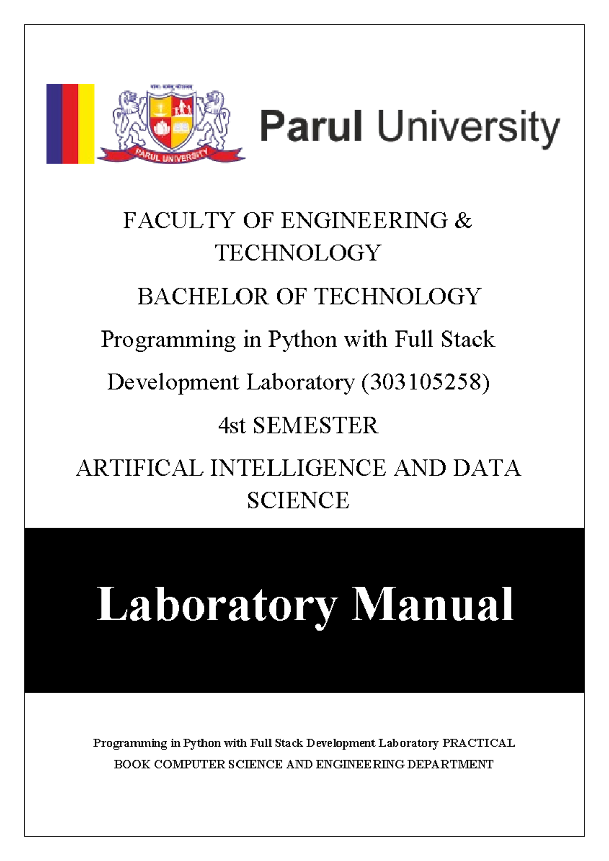 Python LAB Manual (303105258) for Full Stack Development - Set 1 to 4 ...
