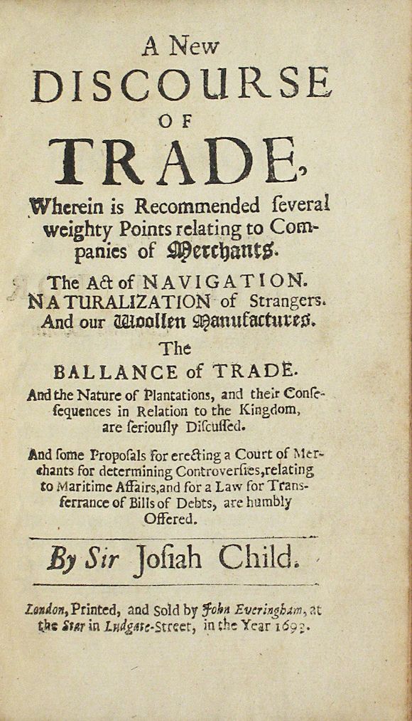 Bonhams : CHILD, JOSIAH, SIR. 1630-1699.