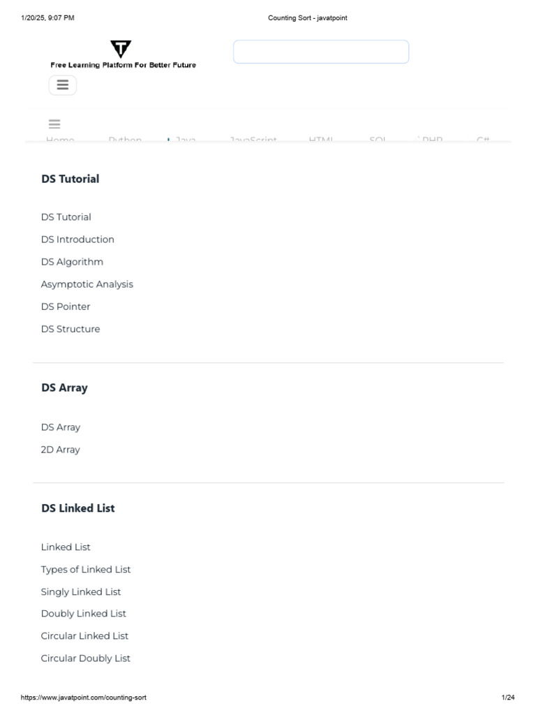 Counting Sort - Javatpoint | PDF | Time Complexity | Theoretical ...