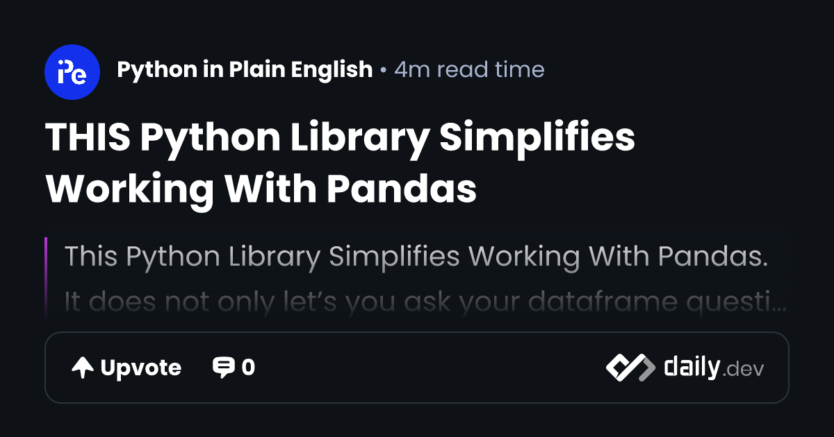 THIS Python Library Simplifies Working With Pandas | daily.dev
