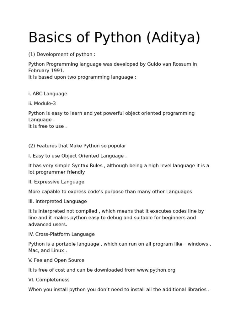 Basics of Pyhton by ADi P | PDF | Python (Programming Language ...