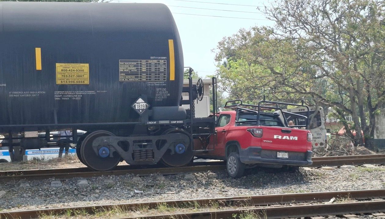 Embiste tren a camioneta en peligroso cruce en Altamira