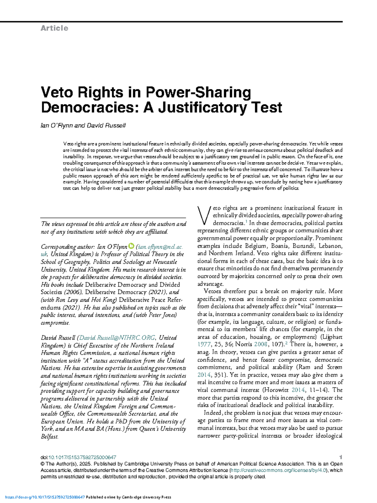 Veto Rights in Democracies: A Justificatory Test (POLI 2025) - Studocu