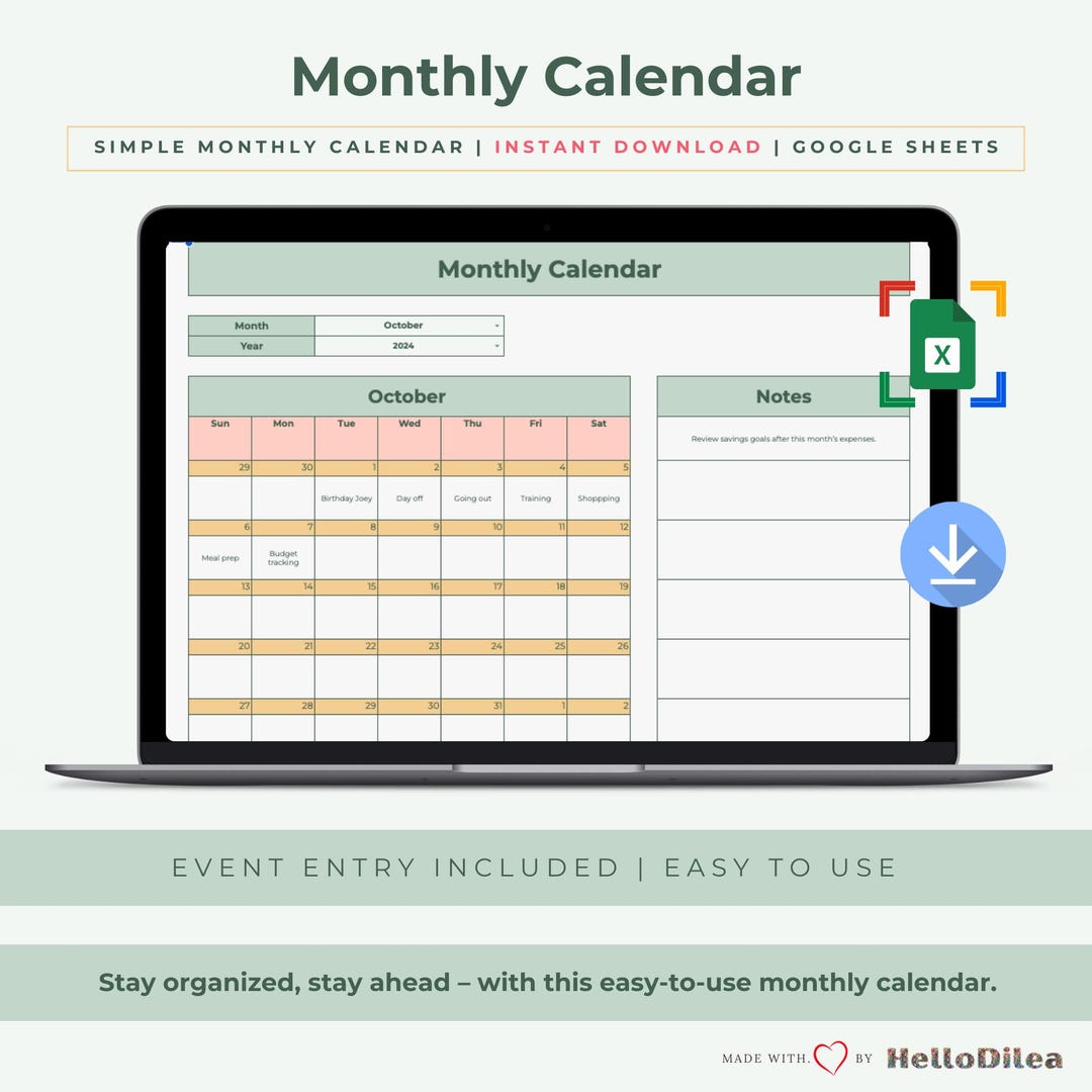 Monthly Calendar Template Easy-to-use Add One Event per Day Effortless ...