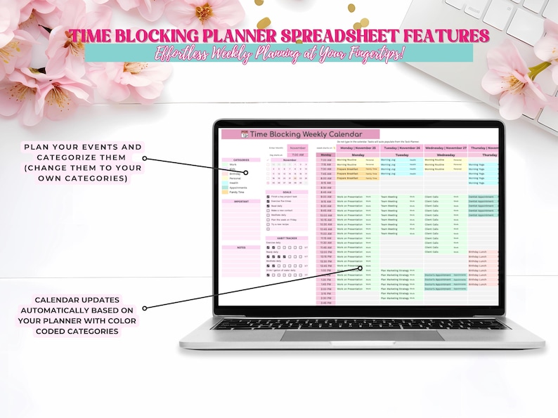 Time Blocking Planner Spreadsheet: Weekly, Monthly Calendar (digital ...