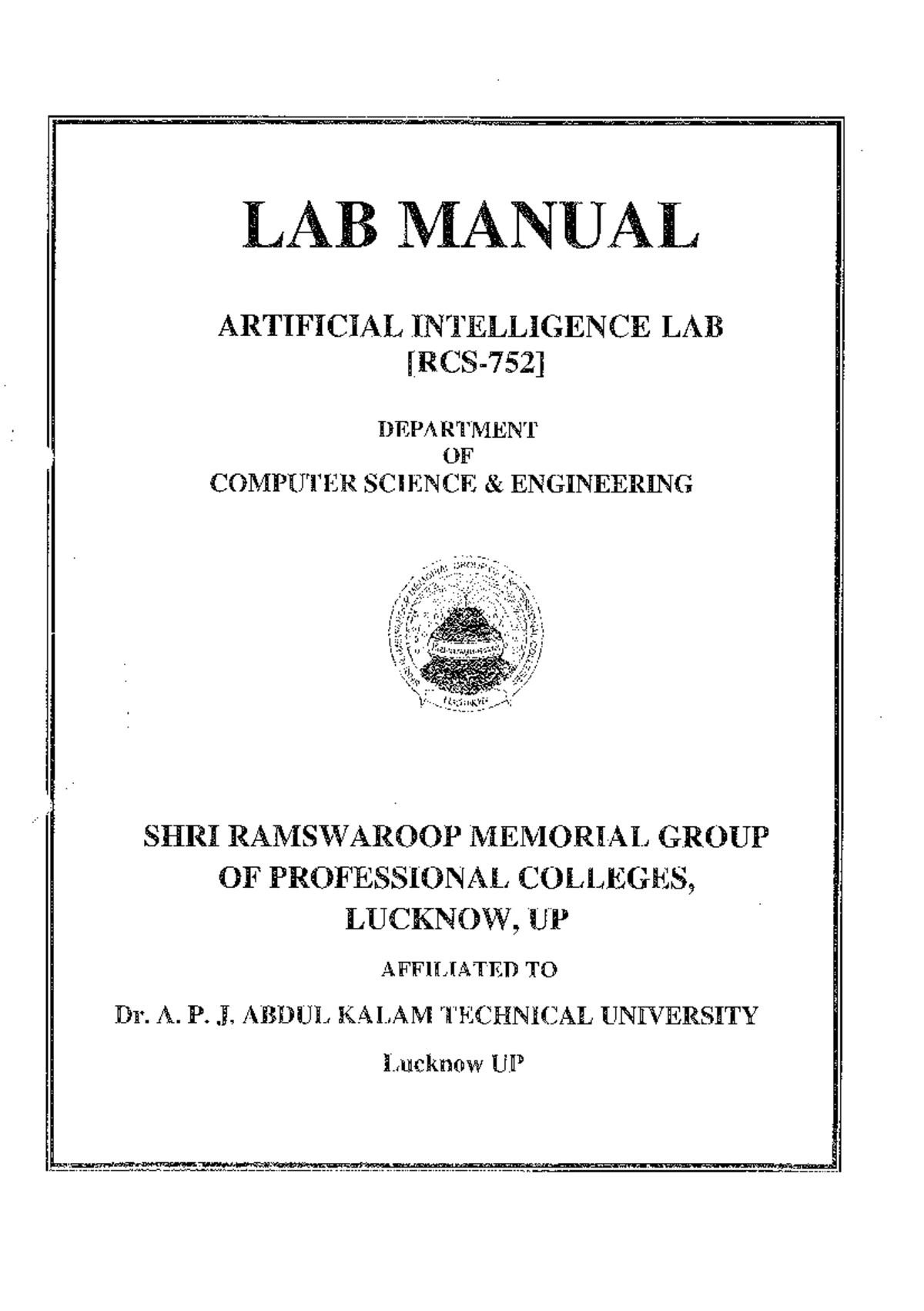 AI & ML Lab Manual - Lab Manual of Artificial Intelligence & Machine ...