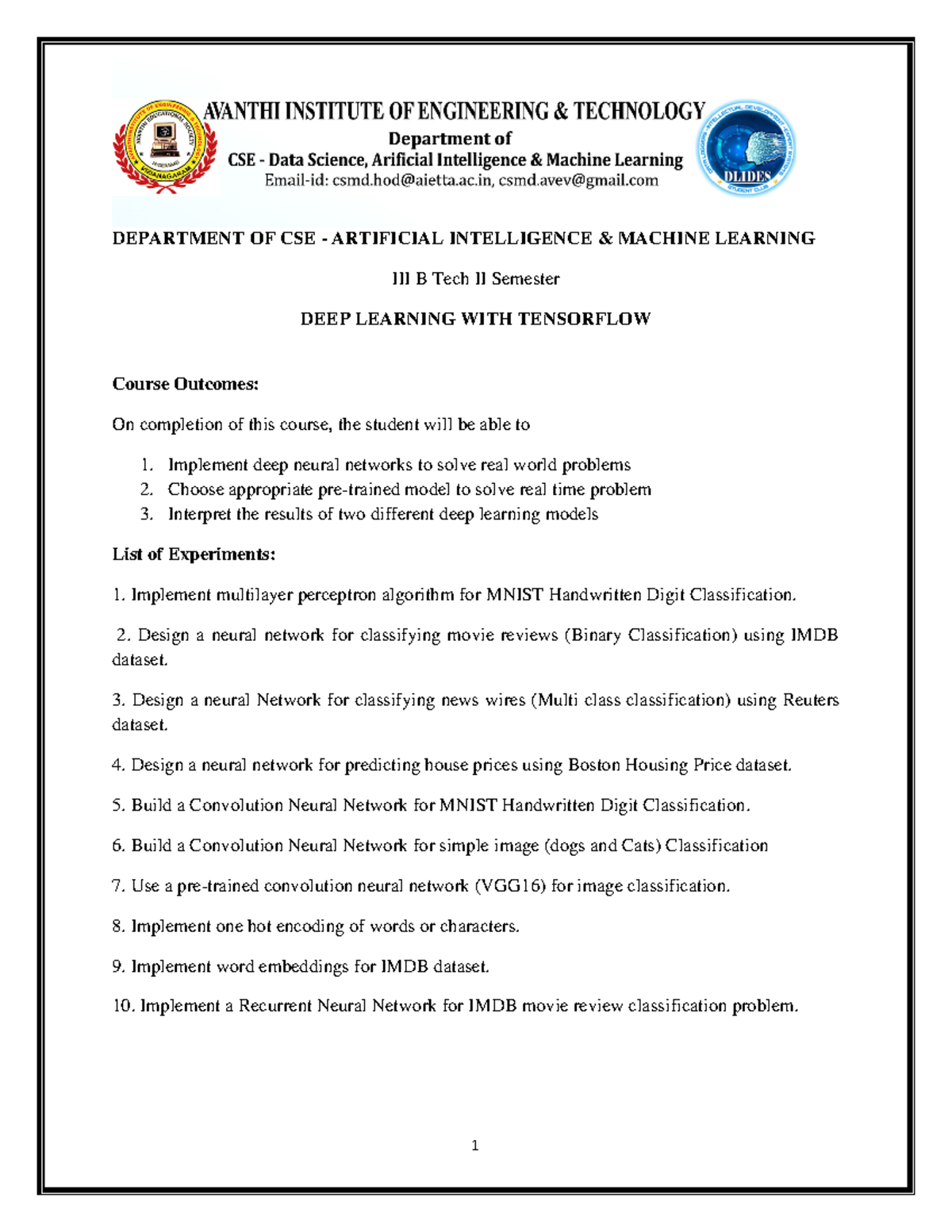 Dl final - DEPARTMENT OF CSE - ARTIFICIAL INTELLIGENCE & MACHINE ...