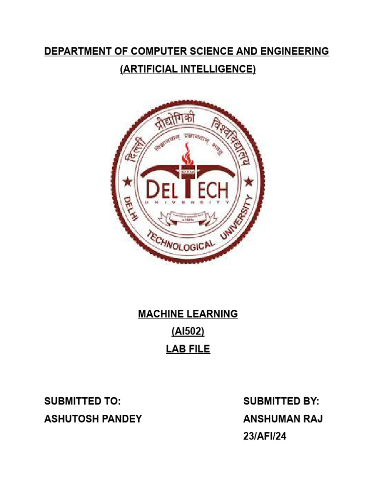 Machine Learning Lab File for B.Tech CSE | PDF