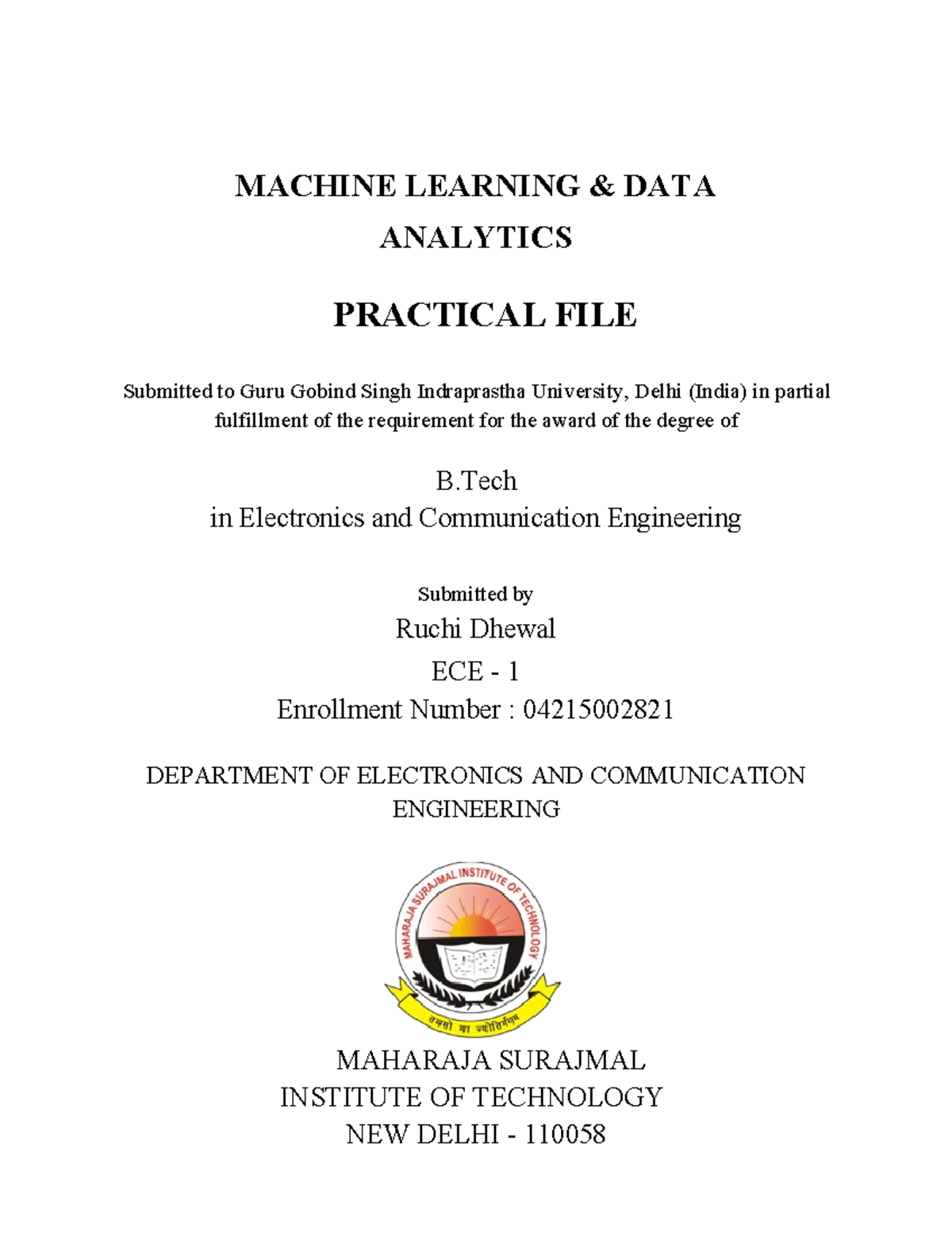 Machine Learning & Data Analytics Practical File - ECE 1 - Studocu