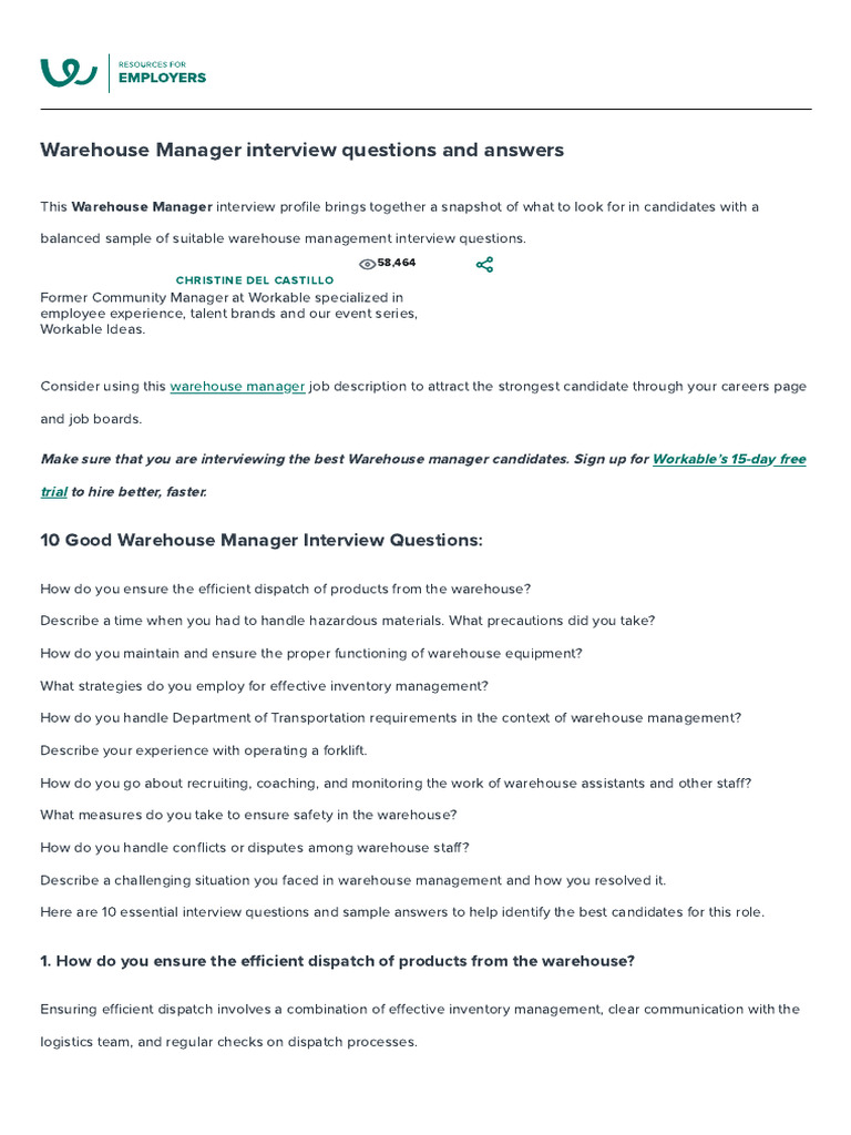 Warehouse Manager Interview Questions and Answer | Pass Guaranteed ...