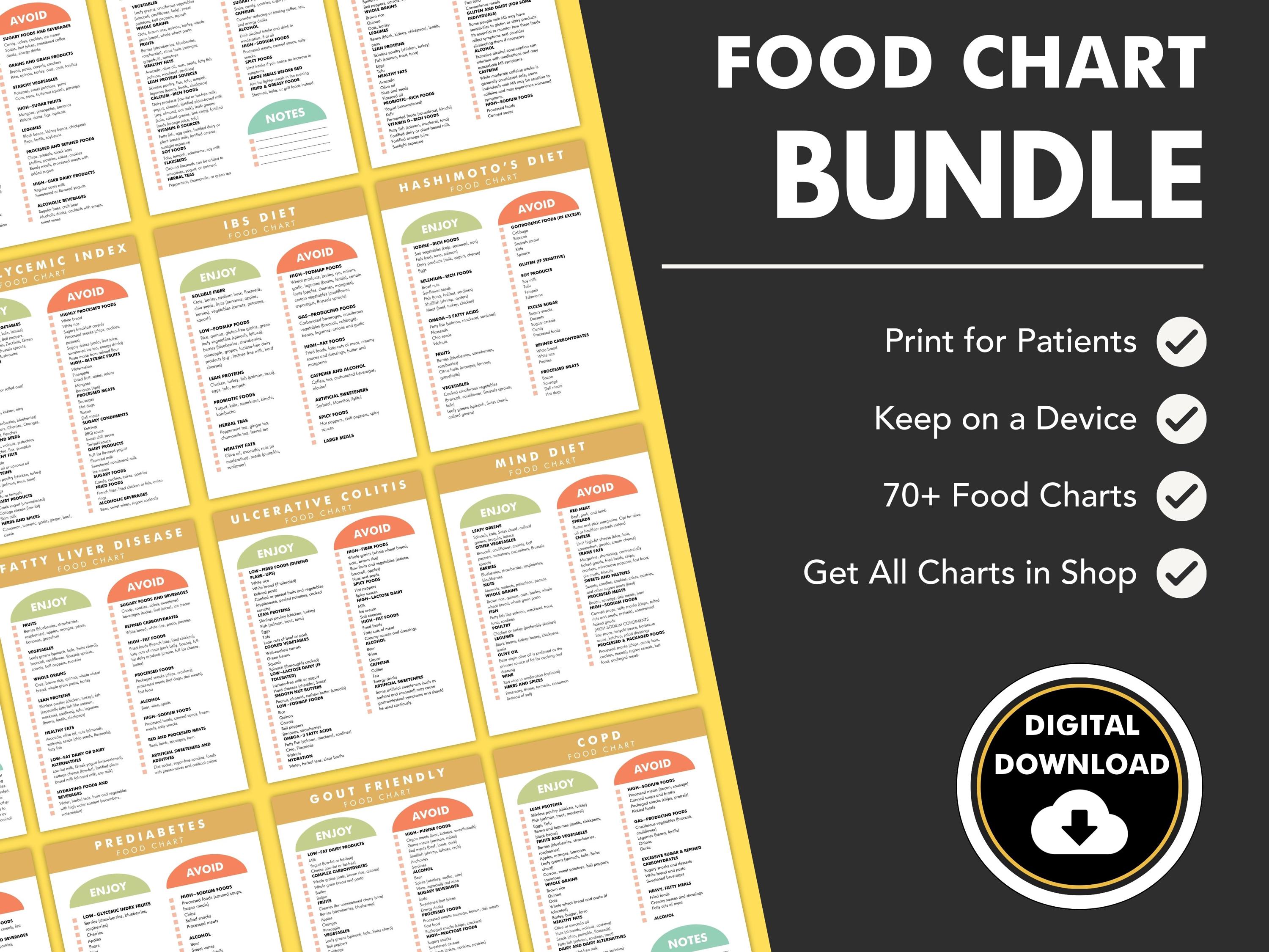 Food List Bundle, Patient Food Charts, Diet Plan Charts, Printable Pdfs ...