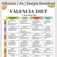 Valencia Diet Plan Printable PDF, 28 Day Meal Guide, Dinner Lunch ...