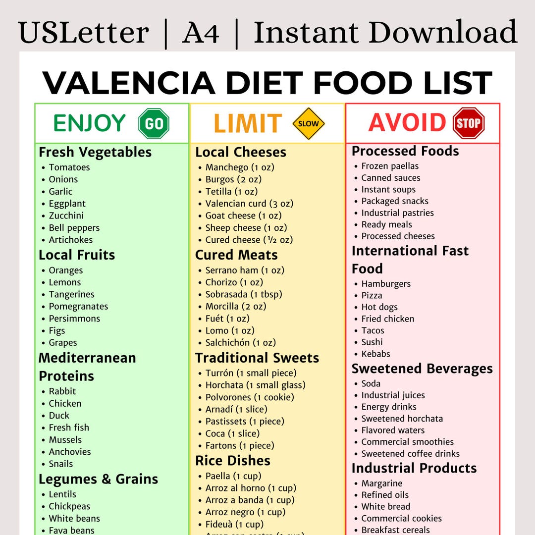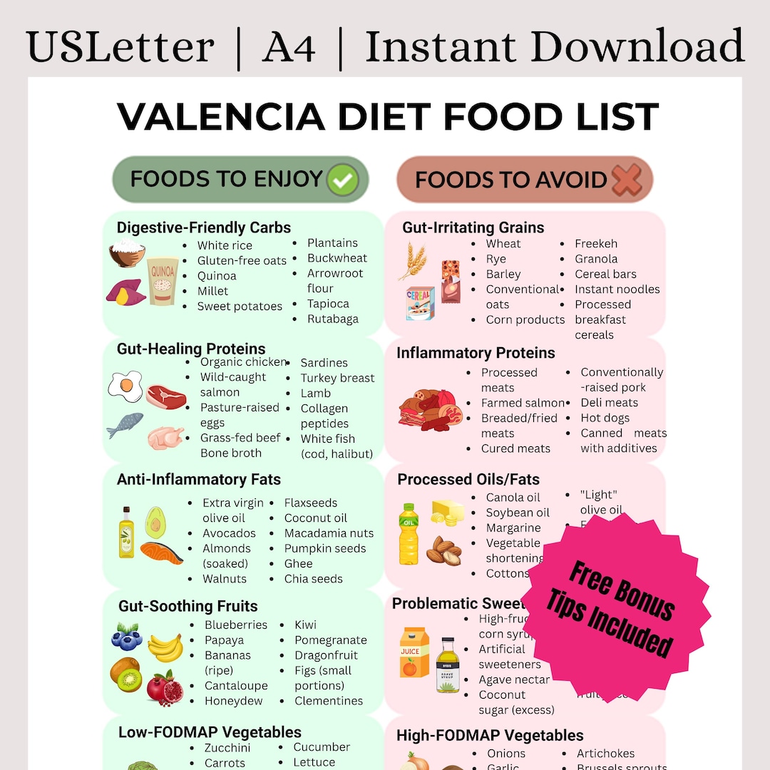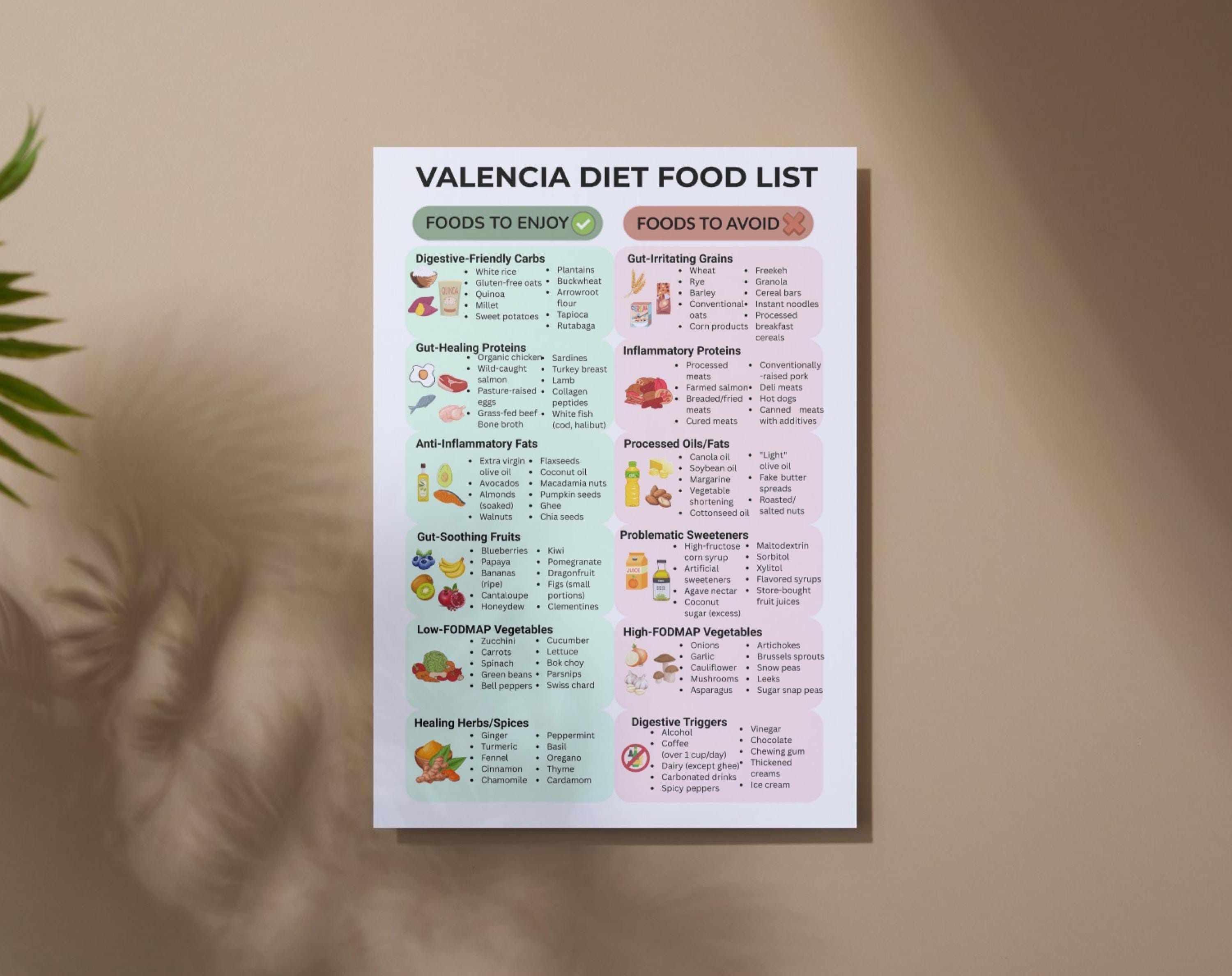 Valencia Diet Food List Printable | What to Eat & Avoid for Gut Health ...