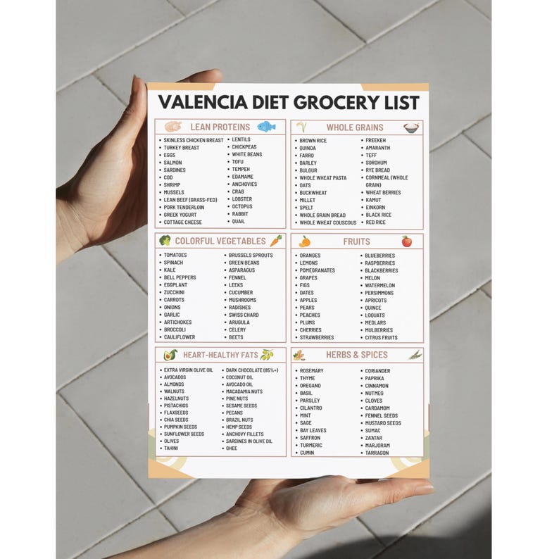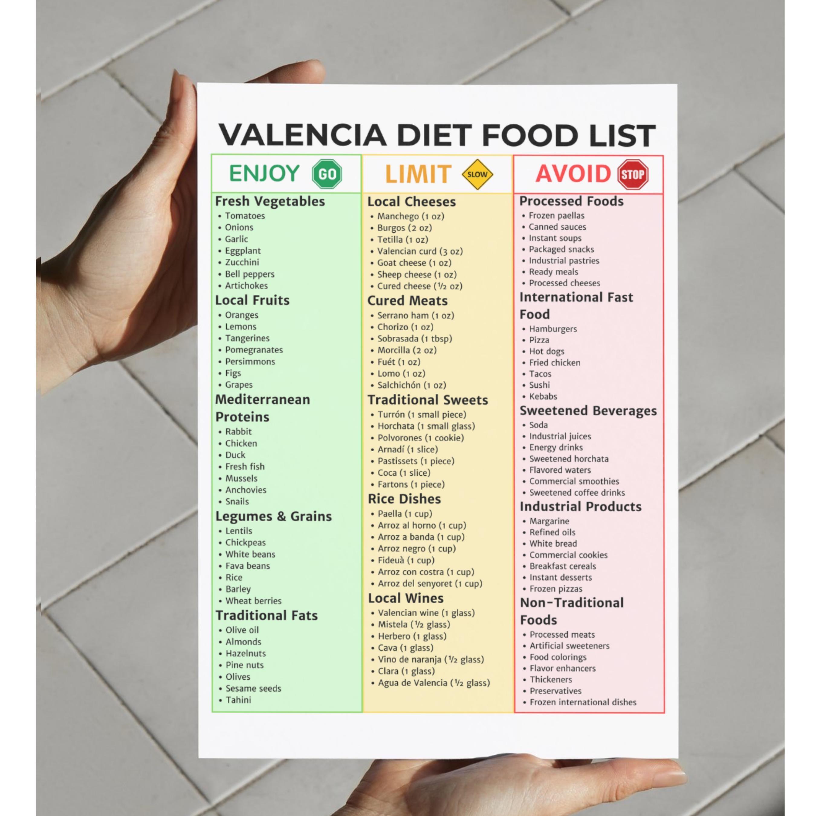 Valencia Diet Food List Printable - Educational Printable Worksheets
