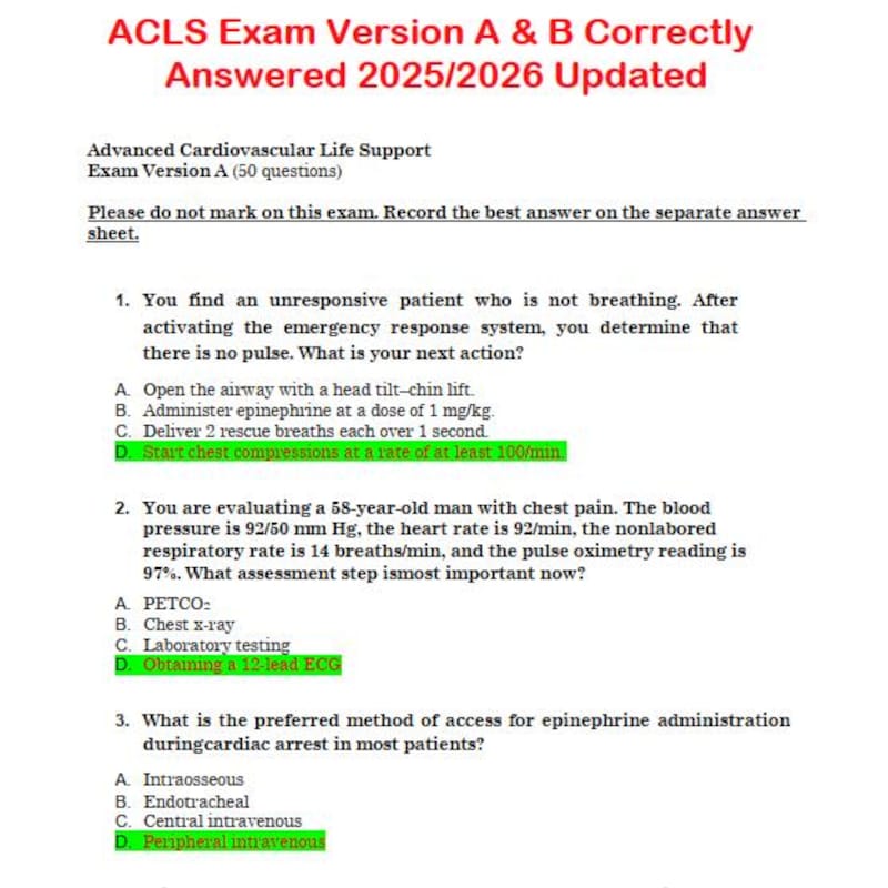 ACLS Practice Quiz I Questions and Answers 2023 - ACLS - Stuvia US ...