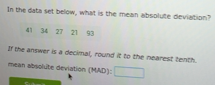 Solved: In the data set below, what is the mean absolute deviation? 41 ...