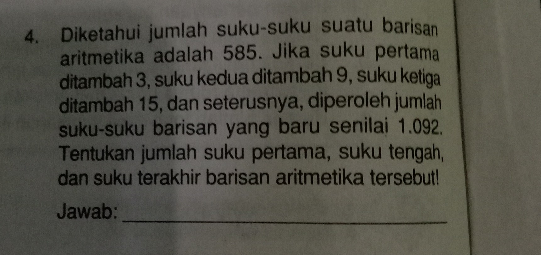 SOLVED: 4. Diketahui jumlah suku-suku suatu barisan aritmetika adalah ...