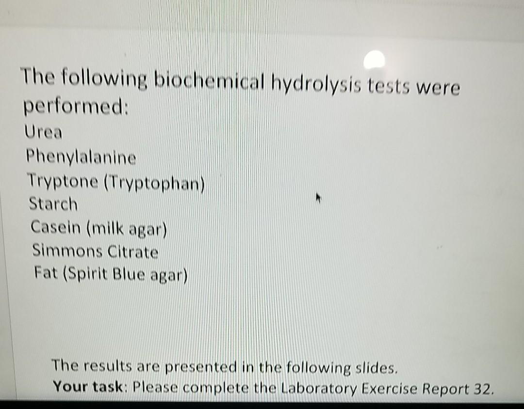 Solved The following biochemical hydrolysis tests were | Chegg.com