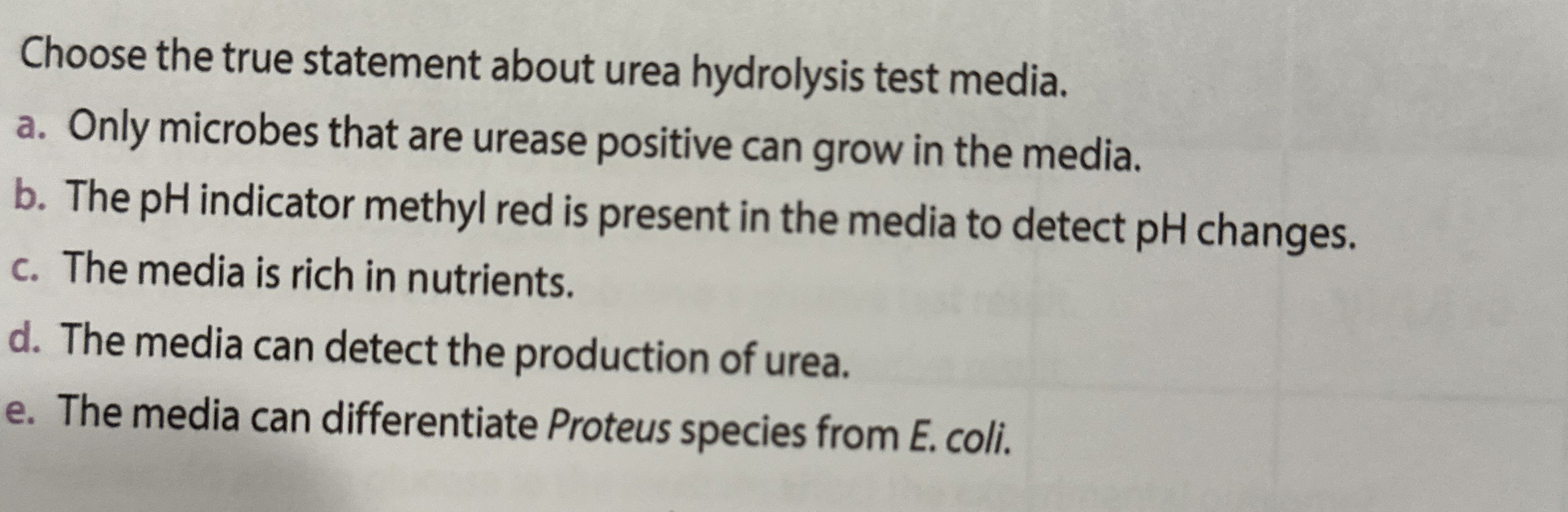 Solved Choose the true statement about urea hydrolysis test | Chegg.com