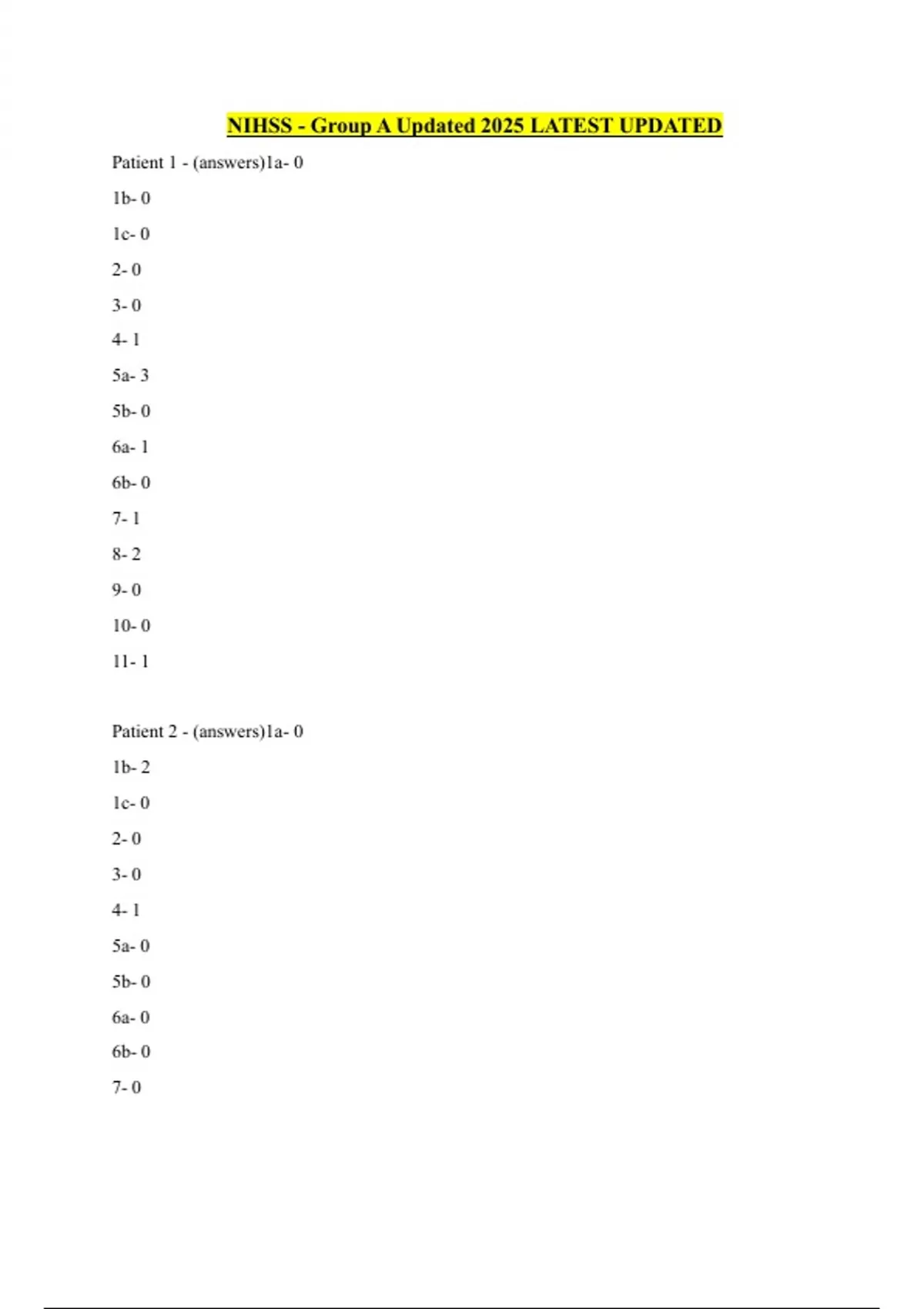 NIHSS - Group A Updated 2025 LATEST UPDATED - NIHSS - Group A - Stuvia US