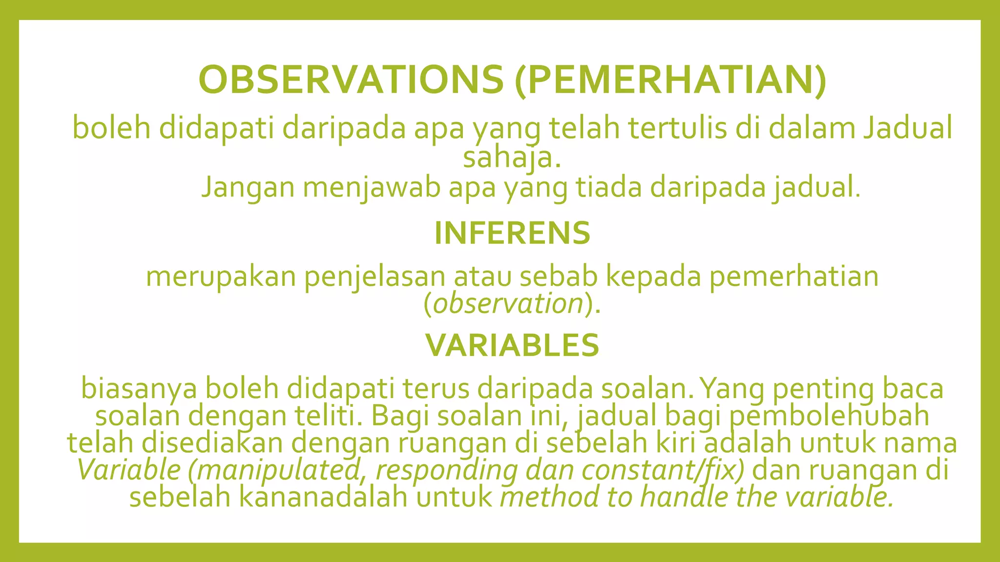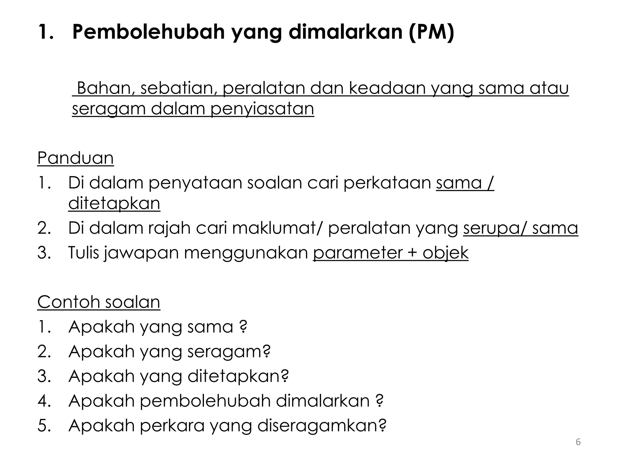 Teknik Menjawab Soalan 7 dan 8 Kertas 2 Sains PMR : Pembolehubah