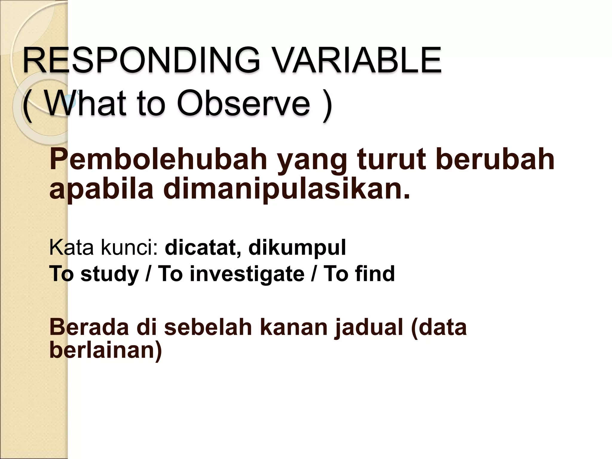 Pembolehubah Dimanipulasikan Pembolehubah Bergerak Balas: Manipulated ...